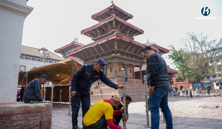 काठमाडौंको वसन्तपुरमा मतदान केन्द्रको तयारी । तस्बिरहरु : नेपाल फोटो लाइब्रेरी