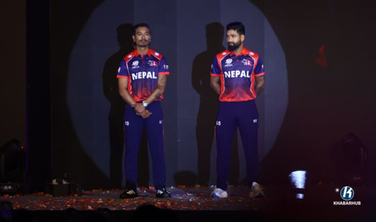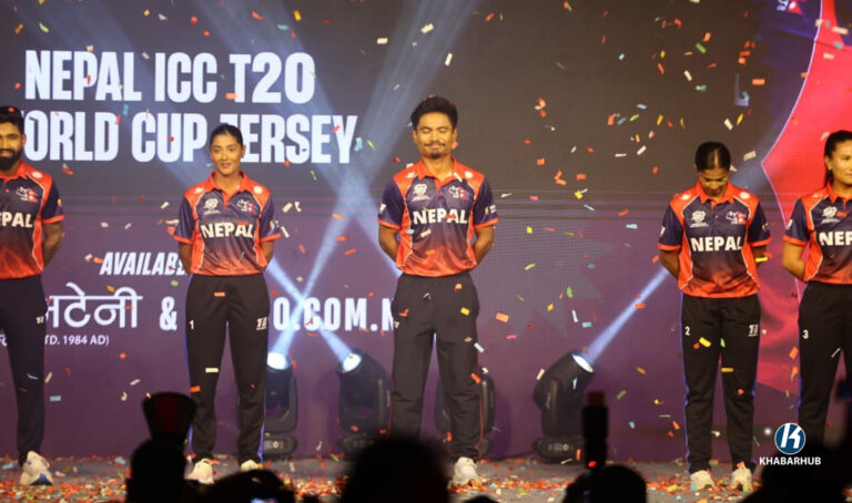 काठमाडौं- सन् २०२६ फेब्रुअरी ७ देखि मार्च ८ सम्म भारत र श्रीलंकामा हुने आईसीसी पुरुष टी-२० विश्वकपका लागि नेपाली राष्ट्रिय क्रिकेट टोलीको नयाँ आधिकारिक जर्सी सोमबार सार्वजनिक गरिएको छ।