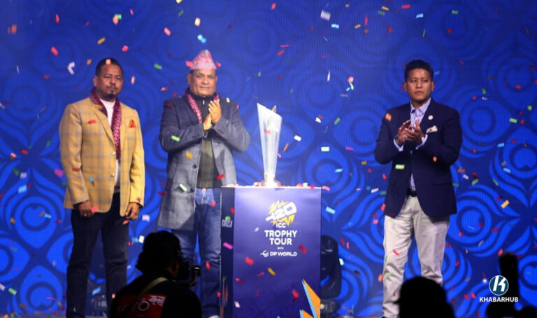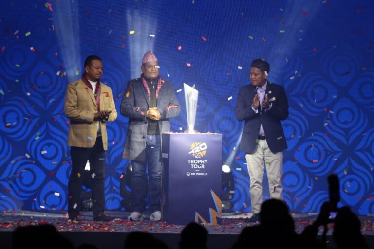 नेपालले तेस्रोपटक टी-२० विश्वकप खेल्दैछ। कार्यक्रममा आईसीसी विश्वकप क्रिकेटको ट्रफी प्रदर्शनीमा राखिएको थियो ।
