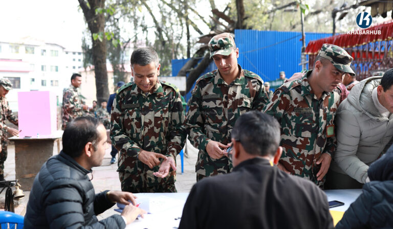 काठमाडौं– कर्मचारी तथा सुरक्षाकर्मीहरूले समानुपातिकतर्फ मतदान गर्न पाउने व्यवस्था हुँदा मतदाता नामावलीमा नाम हुने सैनिकहरूले मतदान गरेका छन् ।