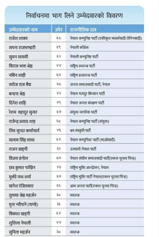 काठमाडौं–८ को निर्वाचनमा भाग लिएका उम्मेदवारहरु