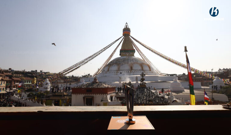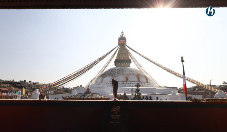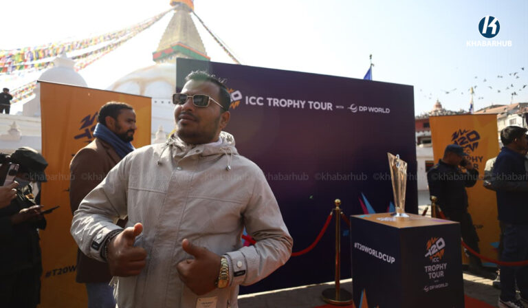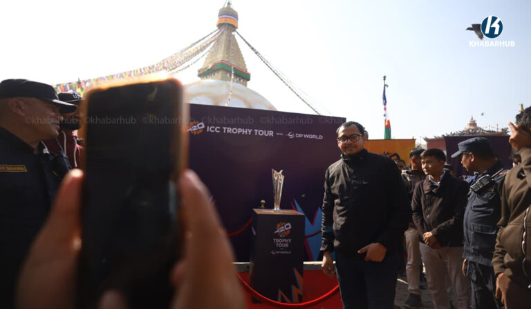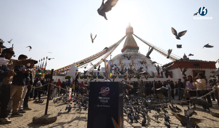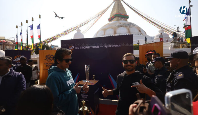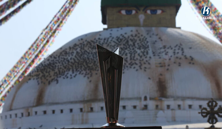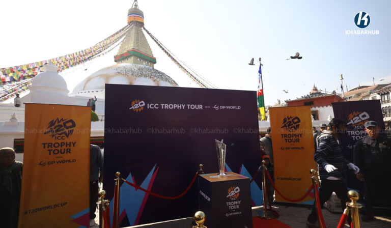 काठमाडौं– आईसीसी टी-२० विश्वकप क्रिकेटको ट्रफी बौद्धमा प्रदर्शन गरिएको छ । बौद्धमा प्रदर्शनीमा राखिएको ट्रफीसँग फोटो खिच्नको लागि मानिसहरूको भीड लागेको थियो ।