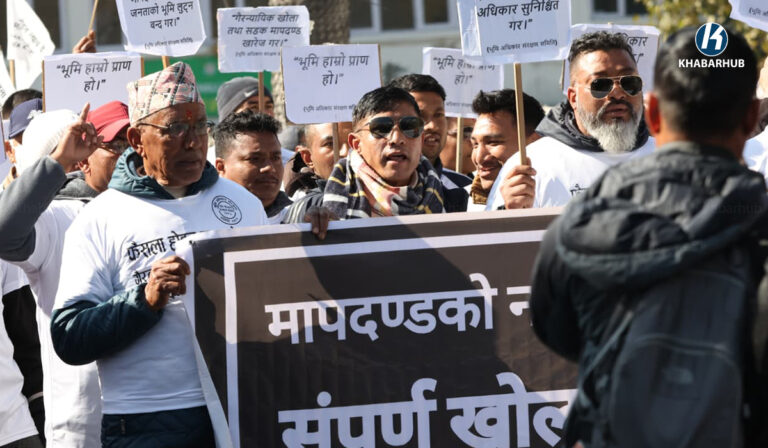 काठमाडौं– गैर न्यायिक रुपमा खोला तथा सडक मापदण्ड निर्धारण गरिएको भन्दै विरोध स्वरूप बिहीबार पनि काठमाडौंमा विरोध प्रदर्शन गरिएको छ ।