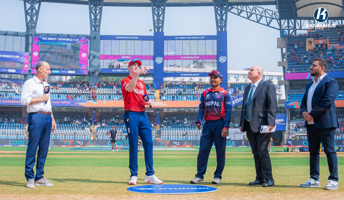 काठमाडौं– आईसीसी टी २० विश्वकप अन्तर्गत आफ्नो पहिलो खेलमा नेपालले आइतबार इङग्ल्याण्डको सामना गर्दैछ ।