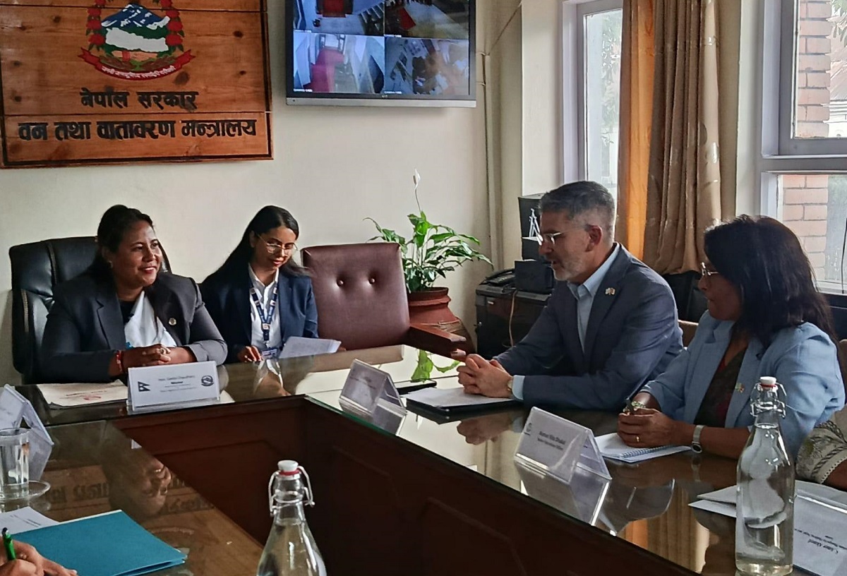 काठमाडौं– कृषि तथा पशुपन्छी विकासमन्त्री गीता चौधरीसँग नेपालका लागि विश्व बैंकका देशीय निर्देशक डेभिड सिस्लेनले भेटवार्ता गरेका छन्।