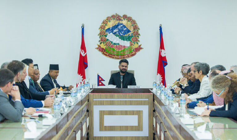 काठमाडौं- प्रधानमन्त्री बालेन्द्र शाहले नेपालस्थित विभिन्न देशका राजदूत तथा कूटनीतिक नियोगका प्रमुखसँग बुधबार सामूहिक भेट र संवाद गरेका छन्।