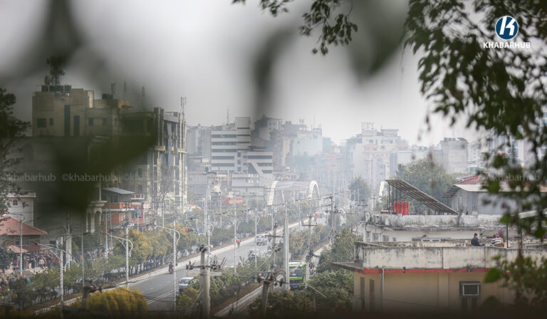 काठमाडौं– सोमबार बिहानदेखि धुम्म बनेको काठमाडौंको आकाश दिउँसो केही खुलेको छ। बिहान बाक्लो तुवाँलो र वायु प्रदूषणका कारण दृश्यता कम हुँदा जनजीवन प्रभावित भएको थियो।