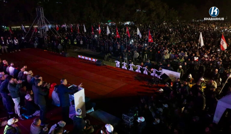 उनको भाषण सुन्न साँझसम्म नेता कार्यकर्ताहरूको भीड लागेको थियो ।