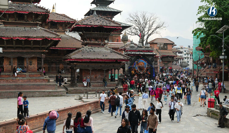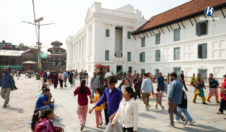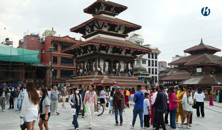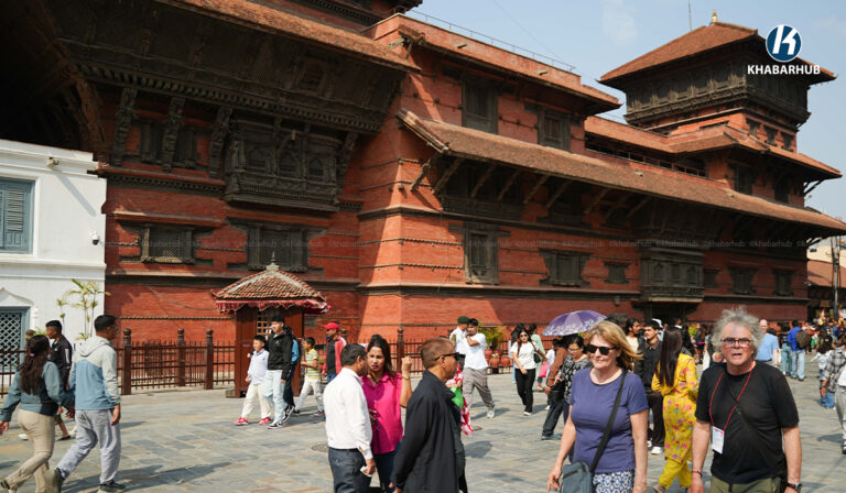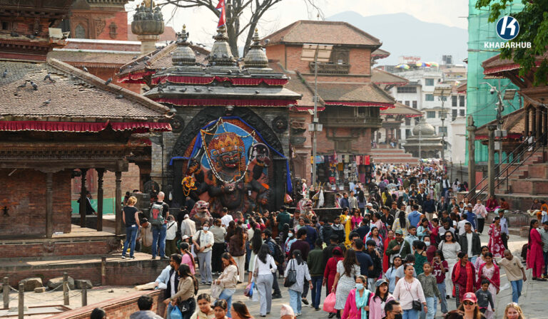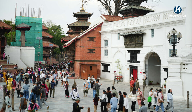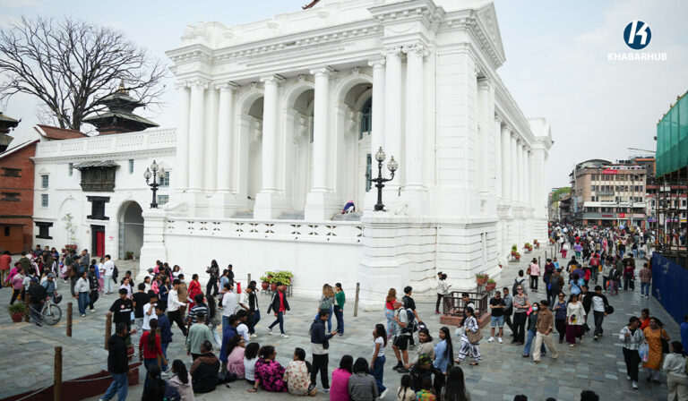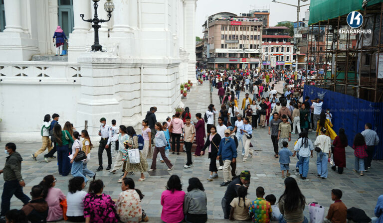 प्राय: शनिबार सर्वसाधारणको बाक्लो भीड लाग्न धार्मिक, ऐतिहासिक र पर्यटकीय स्थल वसन्तपुर दरबार स्क्वायरमा आज आइतबार पनि मानिसहरूको बाक्लो भीड लागेको छ।