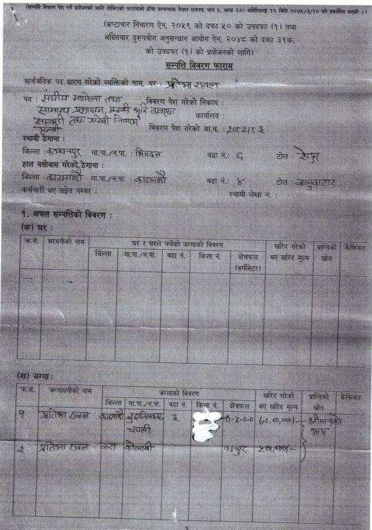 मन्त्री रावलको सम्पत्तिः बूढानीलकण्ठ र बारामा जग्गा, ४४ लाखको गाडी (विवरणसहित) « Khabarhub