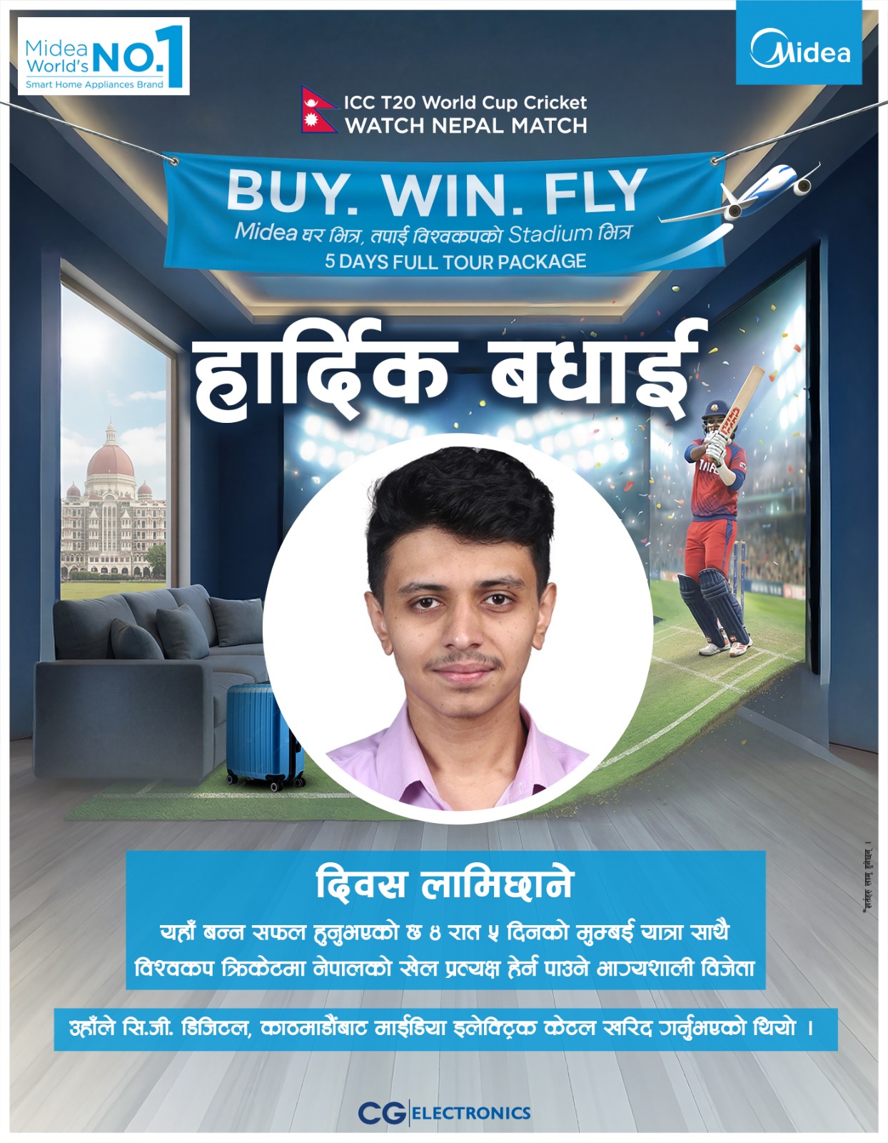 पहिलो चरणका विजेता दिवस लामिछाने रहेका कम्पनीले जनाएको छ । उनले सिजी डिजिटल काठमाडौँबाट माएडिया ब्रान्डको इलेक्ट्रिक केटल किनेर उक्त क्याम्पेनमा सहभागिता जनाएका थिए ।