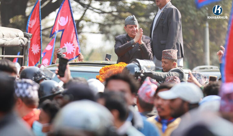 ज्ञानेन्द्र शाहलाई विमानस्थलमा राजावादीको स्वागत « Khabarhub
