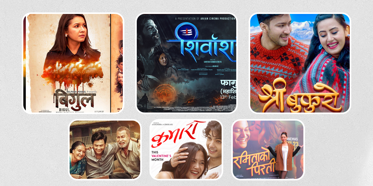 काठमाडौं – फागुन १ गते शुक्रबारबाट तीन फिल्महरु ‘बिगुल’, ‘शिवांश’ र ‘श्री बुकुरो’ एक साथ प्रदर्शनमा आएका छन् । योसँगै प्रदर्शनरत नेपाली फिल्मको संख्या ६ पुगेको छ ।