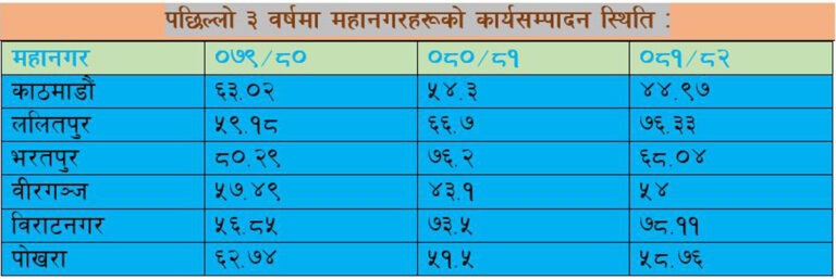 पछिल्लो ३ वर्षमा महानगरहरूको कार्यसम्पादन स्थिति