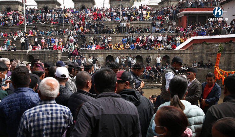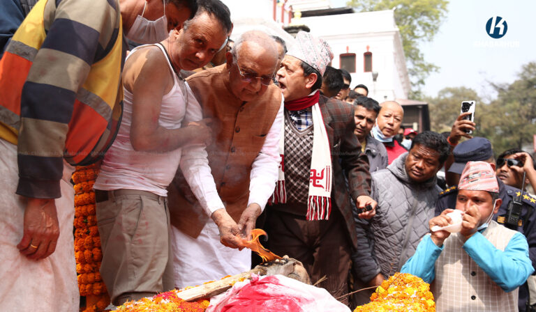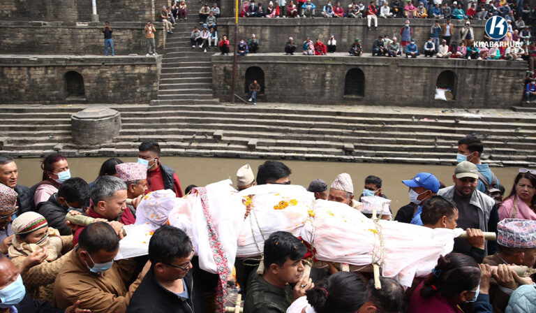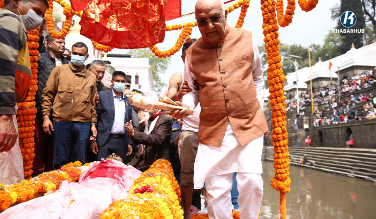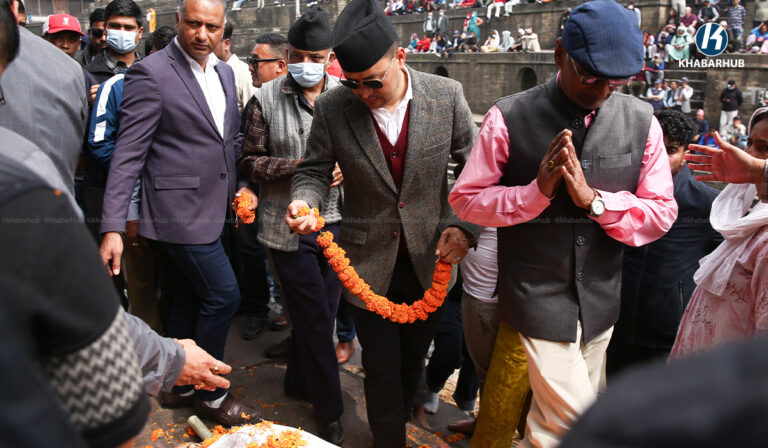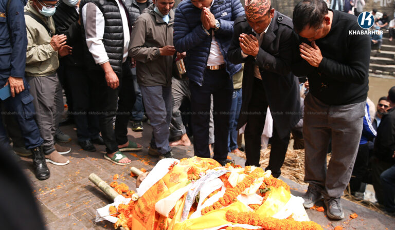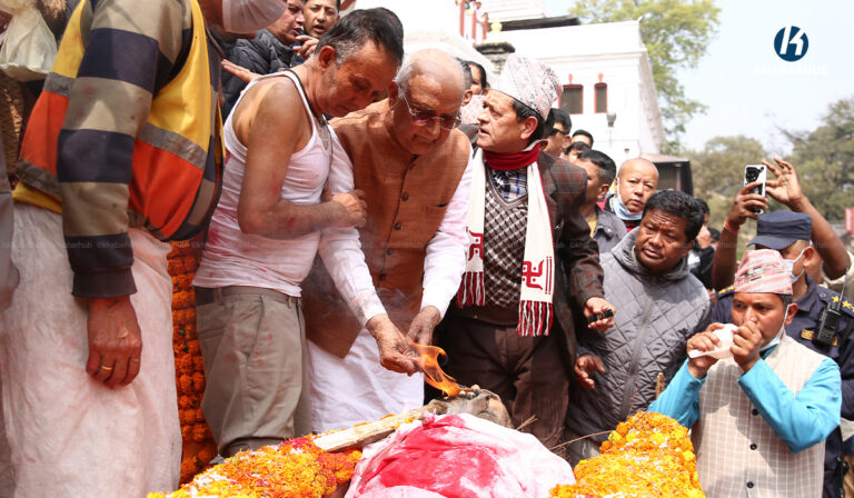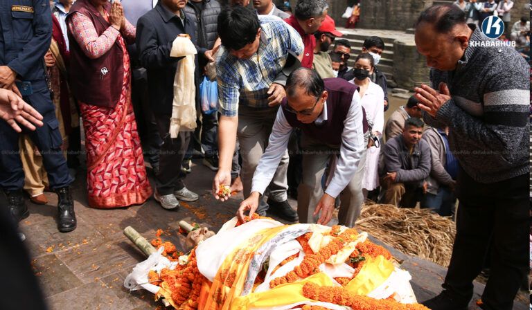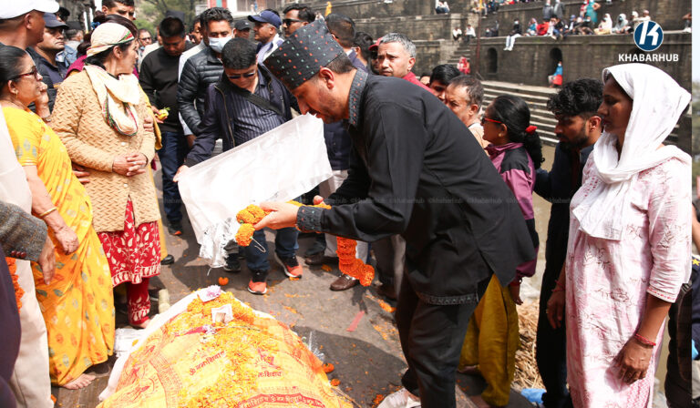 पशुपतिनाथस्थित आर्यघाटमा अन्तिम संस्कारका क्रममा ओलीले बुबाको पार्थिव शरीरमा दागबत्ती दिएका हुन् ।
