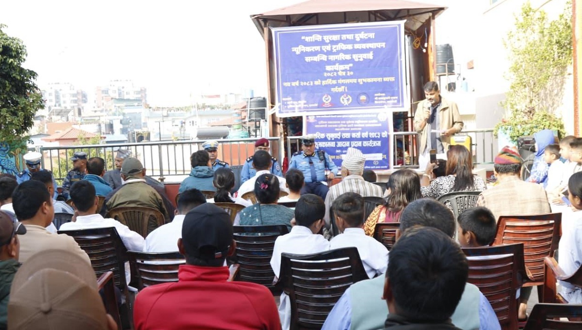 पञ्चकुमारी समाज, सिनामंगल काठमाडौँको आयोजना तथा प्रहरी वृत्त गौशाला र ट्राफिक प्रहरी प्रभाग एयरपोर्टको सहकार्यमा आयोजित ‘सभ्य नागरिकको चिनारी, सडक दुर्घटना न्यूनीकरण हामी सबैको जिम्मेवारी’ विषयक नागरिक सुनुवाइ तथा नयाँवर्ष २०८३ को शुभकामना आदानप्रदान कार्यक्रम सम्पन्न गरिएको हो ।