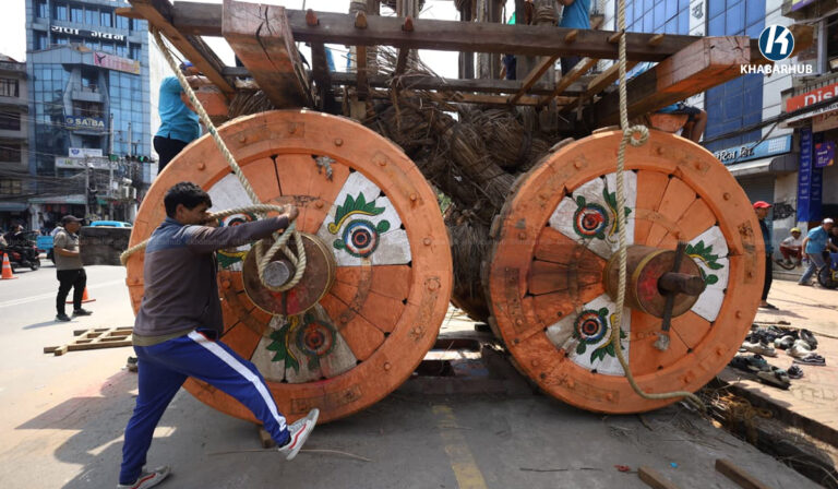 ललितपुरको पुल्चोक क्षेत्रमा अहिले रथ निर्माणको काम तीव्र रूपमा अघि बढिरहेको छ । परम्परागत शैलीमा काठको प्रयोग गरी निर्माण गरिने यो विशाल रथ करिब ६० फिट अग्लो हुने गर्छ, जसलाई स्थानीय कालिगडहरूले विशेष धार्मिक विधिअनुसार तयार पारिरहेका छन् ।