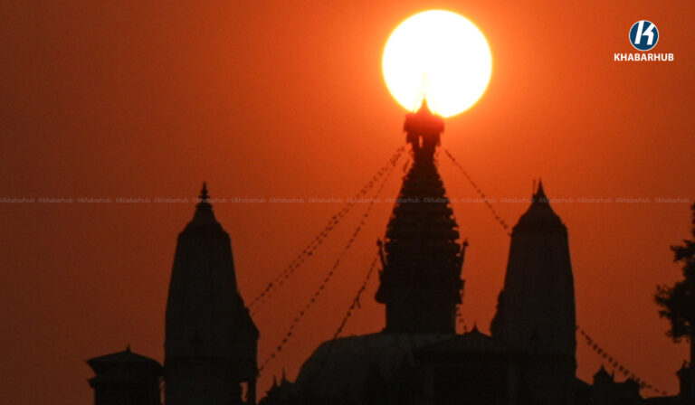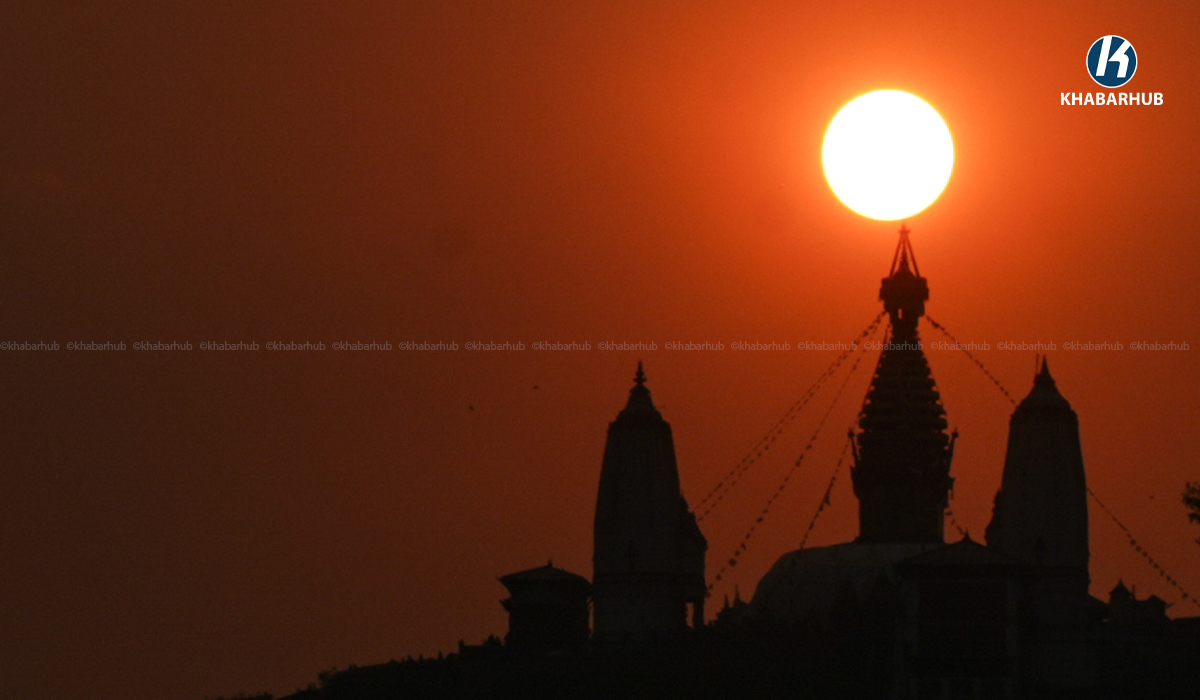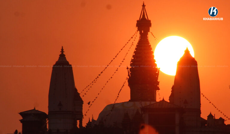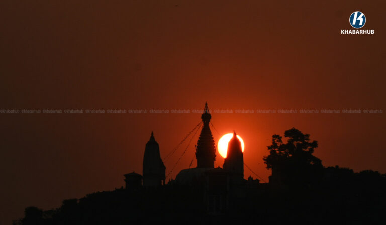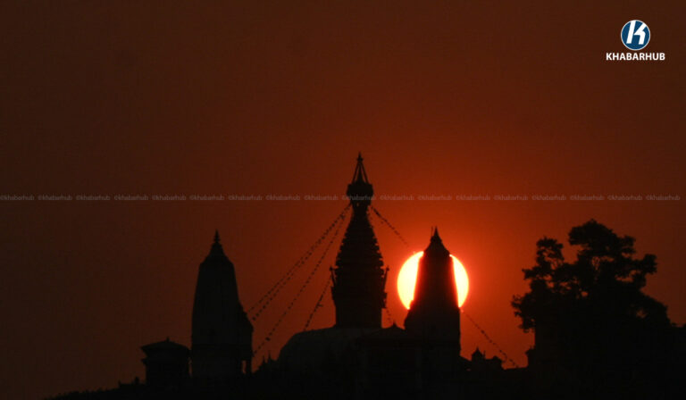 २०८२ सालको अन्तिम सूर्यास्त, यस्तो देखियो स्वयम्भू महाँचैत्य (तस्बिरहरू) « Khabarhub