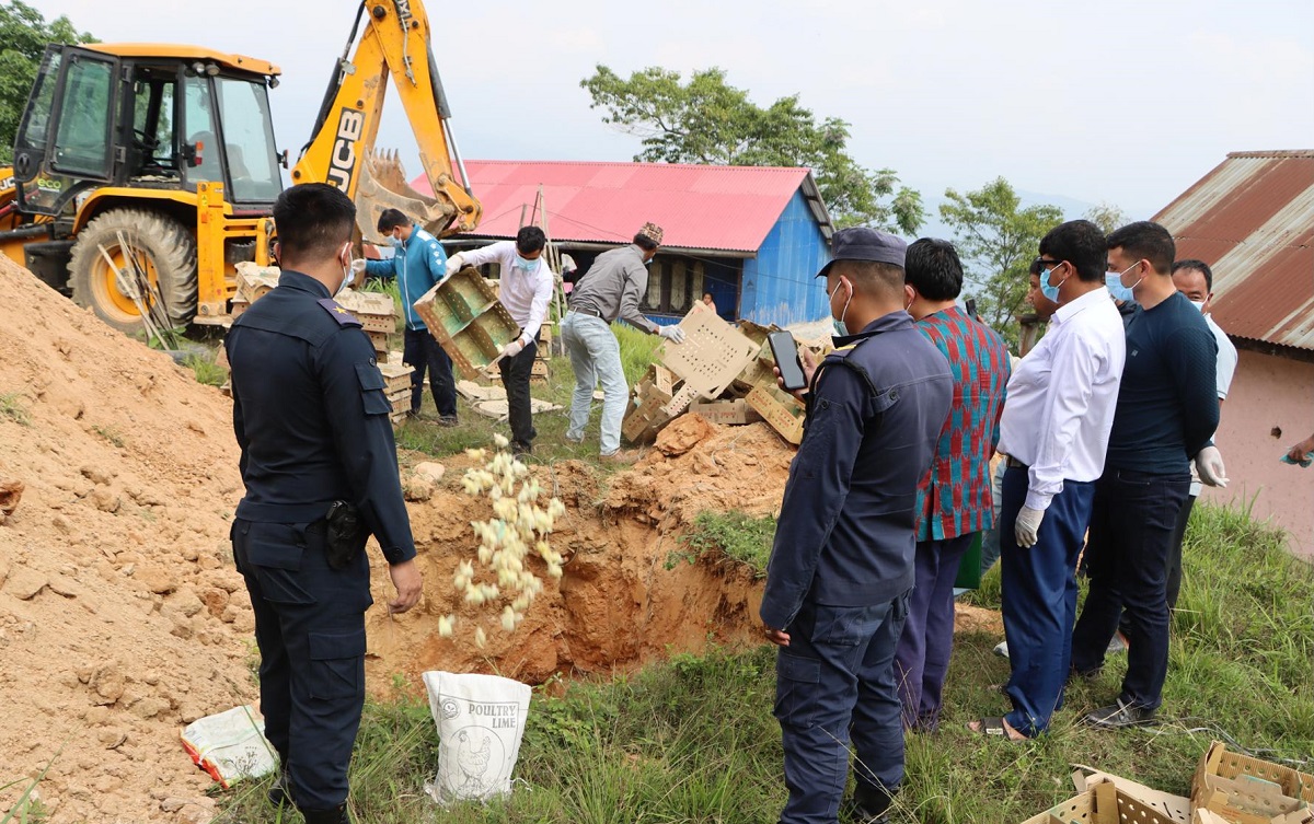 अनुमतिबिना प्रतिबन्धित क्षेत्रबाट ल्याइएका कारण स्वास्थ्य जोखिमलाई ध्यानमा राख्दै नष्ट गरिएको पशु सेवा विज्ञ केन्द्र प्रमुख पोख्रेलले बताए। मोरङको बुढीगङ्गास्थित भिजु पोल्ट्री फर्म प्रालिबाट ल्याइएका तीन लाख रुपैयाँ बढीको चल्ला नष्ट गरिएको उनको भनाइ छ ।