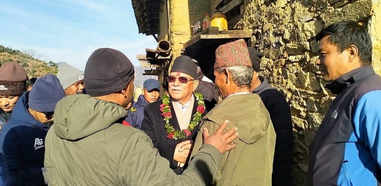 प्रचण्ड मतदाता भेटघाटका लागि तीन दिनदेखि रूकुम पूर्वमा छन् ।  रुकुम पूर्व लुम्बिनी प्रदेशको एक मात्र पहाडी जिल्ला हो ।