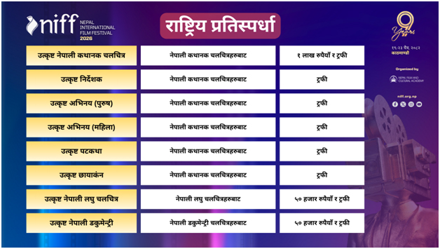 ‘हामीले यो पटक युवापुस्ता केन्द्रित चलचित्रहरुलाई प्राथमिकता दिएका छौं । निफलाई युवा मैत्री बनाउने हाम्रो प्रयास रहेको छ,’ निफकाअध्यक्ष केपी पाठक भन्छन्, ‘युवा मेकरहरुलाई प्रोत्साहन गर्न हामीले एआई चलचित्र मेकिङको कार्यशाला लगायतका सेसन पनि राखेका छौं । चलचित्रबाट युवादर्शकहरुलाई आशा जगाउने हाम्रो मुख्य प्रयास रहनेछ ।’