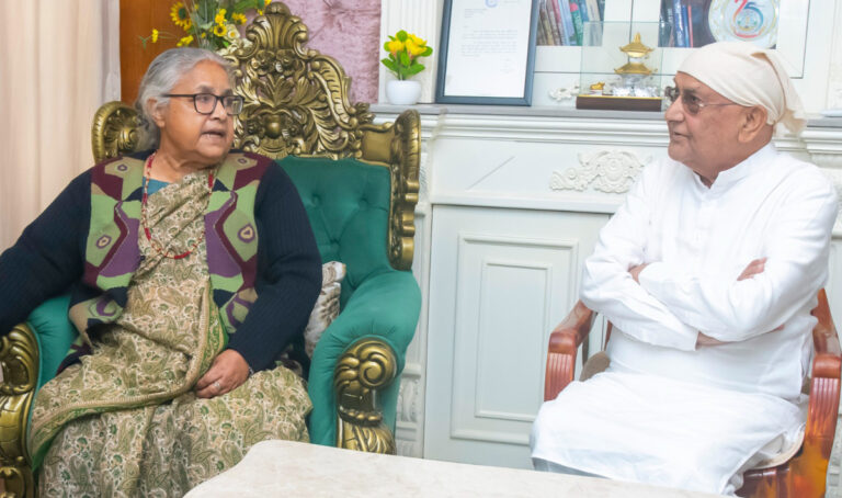 काठमाडौं- पितृशोकमा रहेका नेकपा अध्यक्ष केपी शर्मा ओलीलाई भेट्न पूर्वराष्ट्रपति विद्यादेवी भण्डारी र प्रधानमन्त्री सुशीला कार्कीले भक्तपुरको गुन्डु पुगेर भेटेका छन् ।