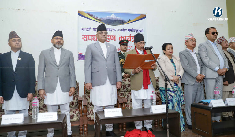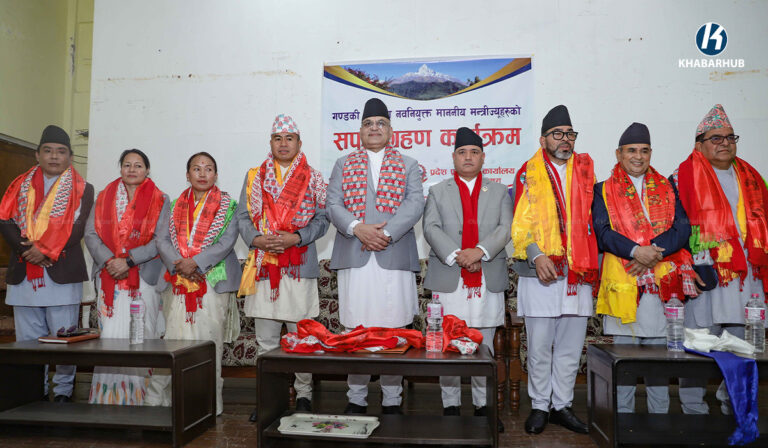 काठमाडौं– गण्डकी प्रदेश सरकारका नवनियुक्त मन्त्रीहरूले आज पद तथा गोपनीयताको सपथ ग्रहण गरेका छन् ।