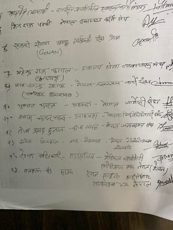 संयोजक डा. अनिल विक्रम कार्की र सदस्य सचिव माइकल देवकोटा लगायत १५ जनाले विज्ञप्तिमा हस्ताक्षर गरेका छन् । साथै, विभिन्न स्वास्थ्यसम्बन्धी संघ–संस्थाका प्रतिनिधिहरूले पनि समर्थन जनाएका छन् ।