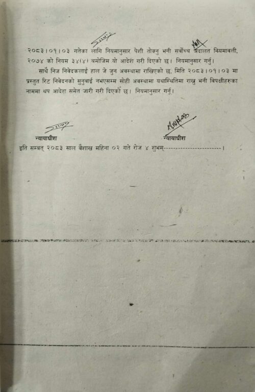 साथै, सर्वोच्चले सो मुद्दाको पेसी भोलि बिहीबारको लागि तोकेको छ ।