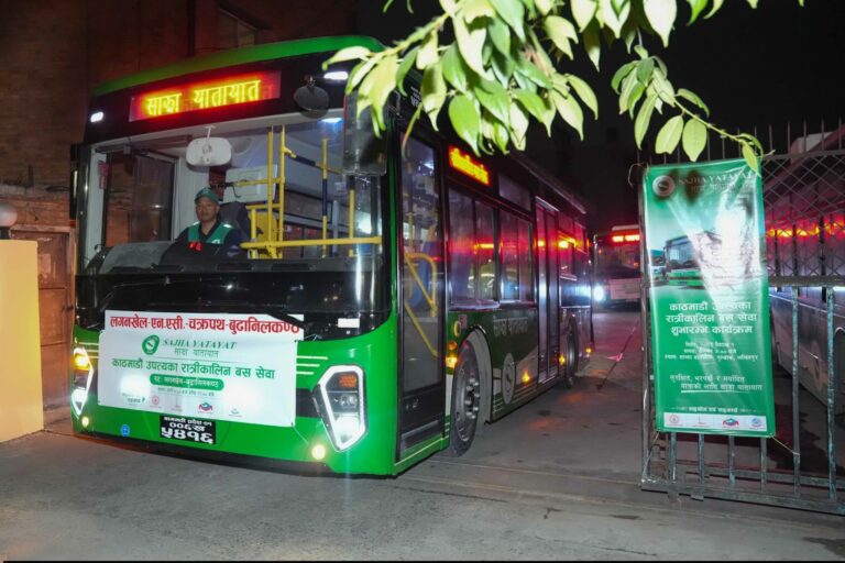 काठमाडौँ–  उपत्यकाका ४ नगरपालिकाको  संयुक्त प्रयासमा बुधबारदेखि रात्रिकालीन बस सेवा सुरु भएको छ । काठमाडौँ, ललितपुर महानगरपालिका र बुढानीलकण्ठ, चन्द्रागिरि नगरपालिकाको सहकार्यमा यो सेवा सुरु भएको हो । राति ८ बजेबाट सुरु हुने यो सेवा ११ बजेसम्म मात्रै उपलब्ध हुनेछ । सिसिटिभी, वाइफाइ, सुरक्षाकर्मीसहितको अत्याधुनिक सुविधासहित साझाका ४ विद्युतीय बस २ फरक रुटमा चल्ने यी बस छन् ।