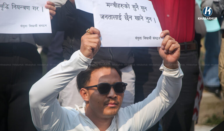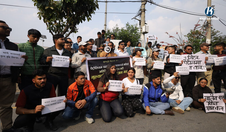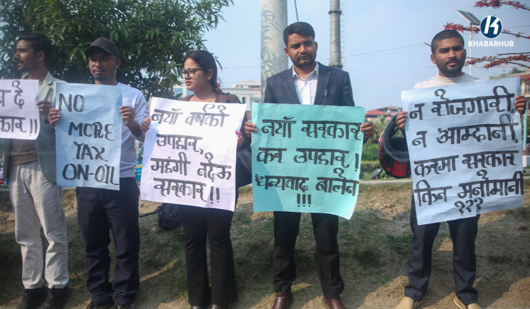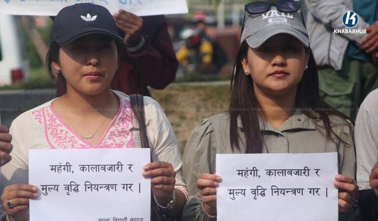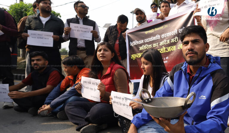 काठमाडौं– संयुक्त विद्यार्थी संगठनले पेट्रोलियम पदार्थमा लगाइँदै आएको कर खारेज गरी मूल्य समायोजन र जनताका लागि राहत प्याकेज घोषणा गर्न माग गर्दै काठमाडौंको माइतीघर मण्डलामा प्रदर्शन गरेको छ ।