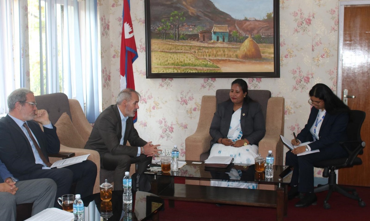 काठमाडौं– कृषि तथा पशुपन्छी विकास र वन तथा वातावरणमन्त्री गीता चौधरीसँग नेपालका लागि एसियाली विकास बैंक (एडिबी) का देशीय निर्देशक अर्नाउड काउचोइसले भेटवार्ता गरेका छन् ।