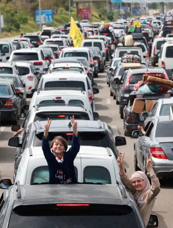 बेरूत- लेबनानमा युद्धविराम लागू भएसँगै हजारौँ विस्थापित नागरिकहरू आफ्ना घरतर्फ फर्किन थालेका छन्। यसका कारण मुख्य सडकहरूमा लामो ट्राफिक जाम देखिएको छ।