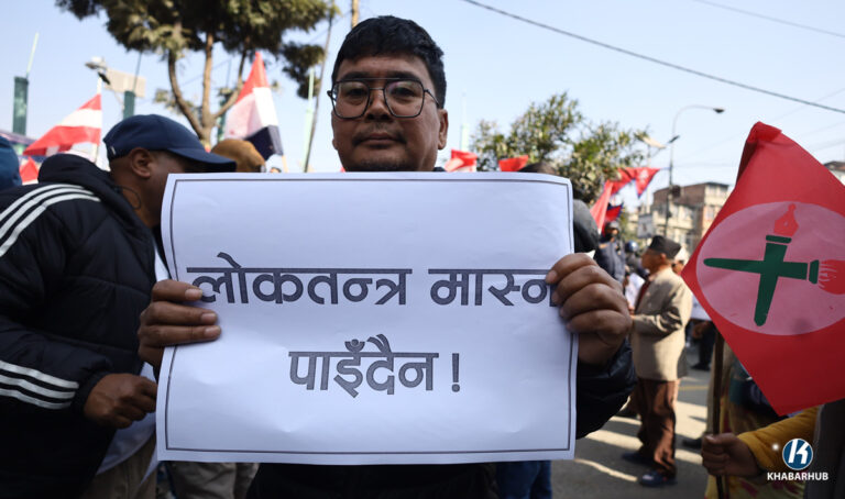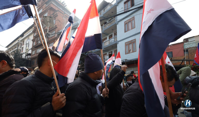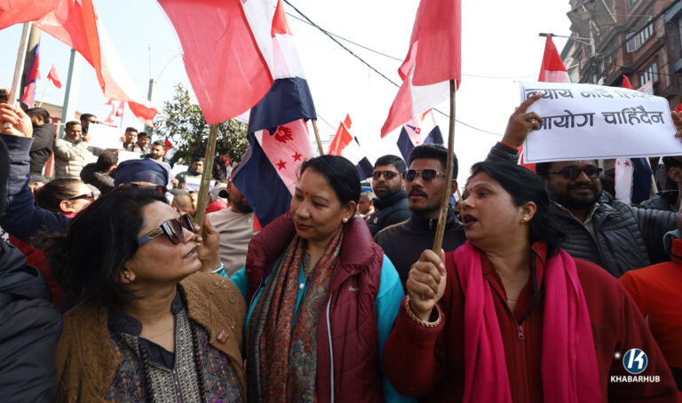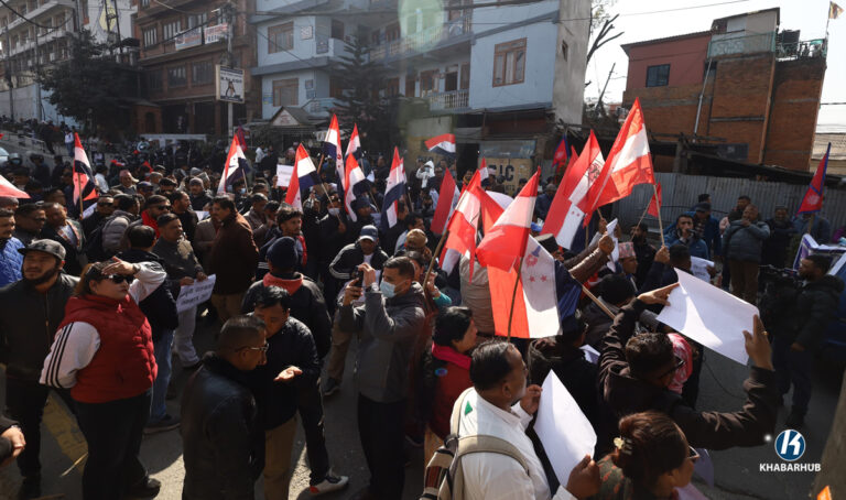 पार्टी आधिकारिकताको माग गर्दै देउवा समूहले काठमाडौंको माइतीघरमा प्रदर्शन गरिरहेको छ ।
