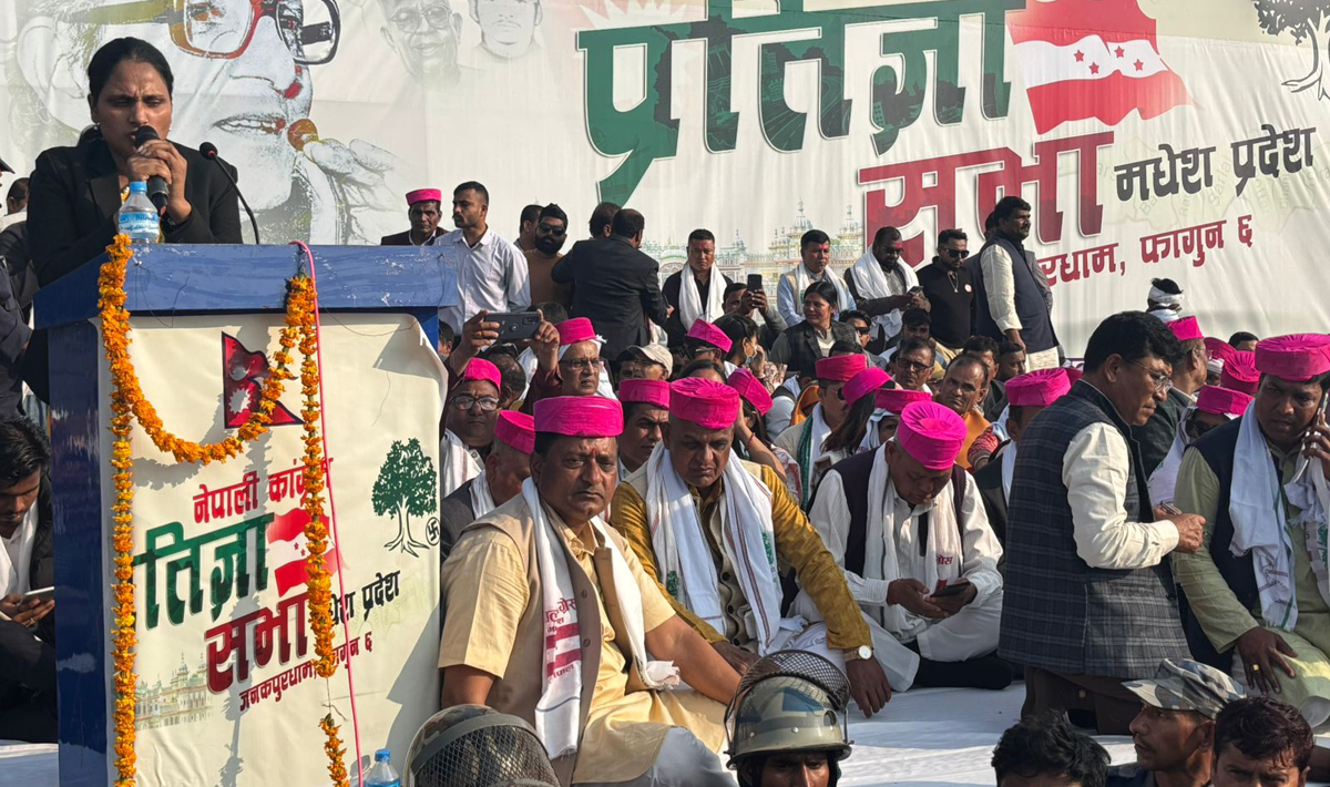 मैथिली भाषामा बोल्दै उनले भनिन्, ‘सब दाइब मधेससक जनतासब भोट नेतासबके देने है। मगर सब दिनसे नेतासब मधेसक जनताके लुइट रहल है। यहाँ सब यी दाइब मधेसमे निक उम्मेदवार छानू,कांग्रेसके उम्मेदवारके पहचानू ।’