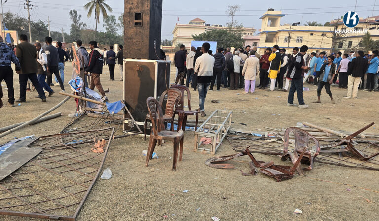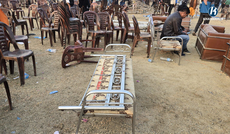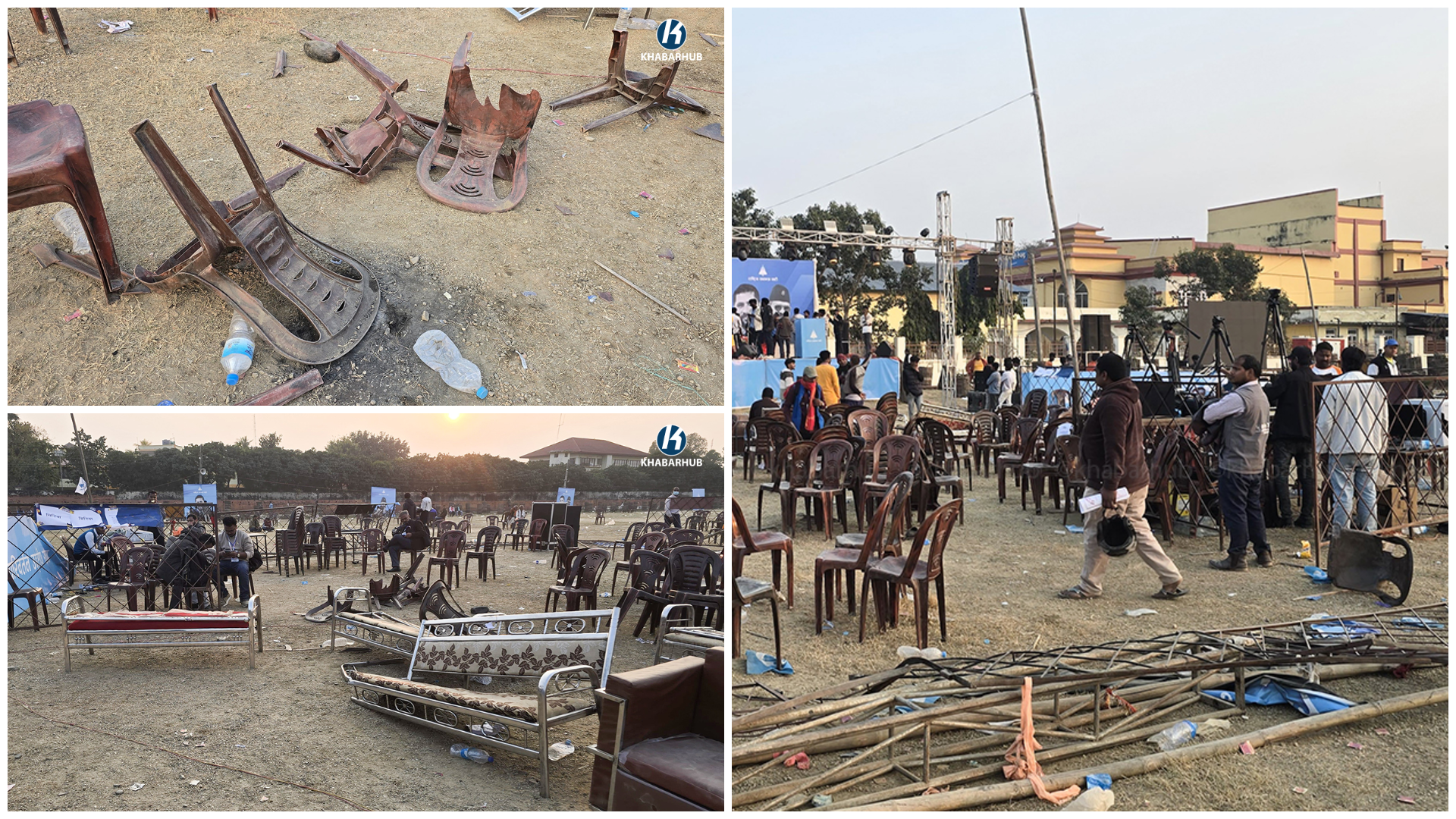 सो क्रममा कार्यक्रम स्थलमा राखिएको कुर्सी लगायत सुरक्षा घेरा तोडफोड गरिएको छ ।