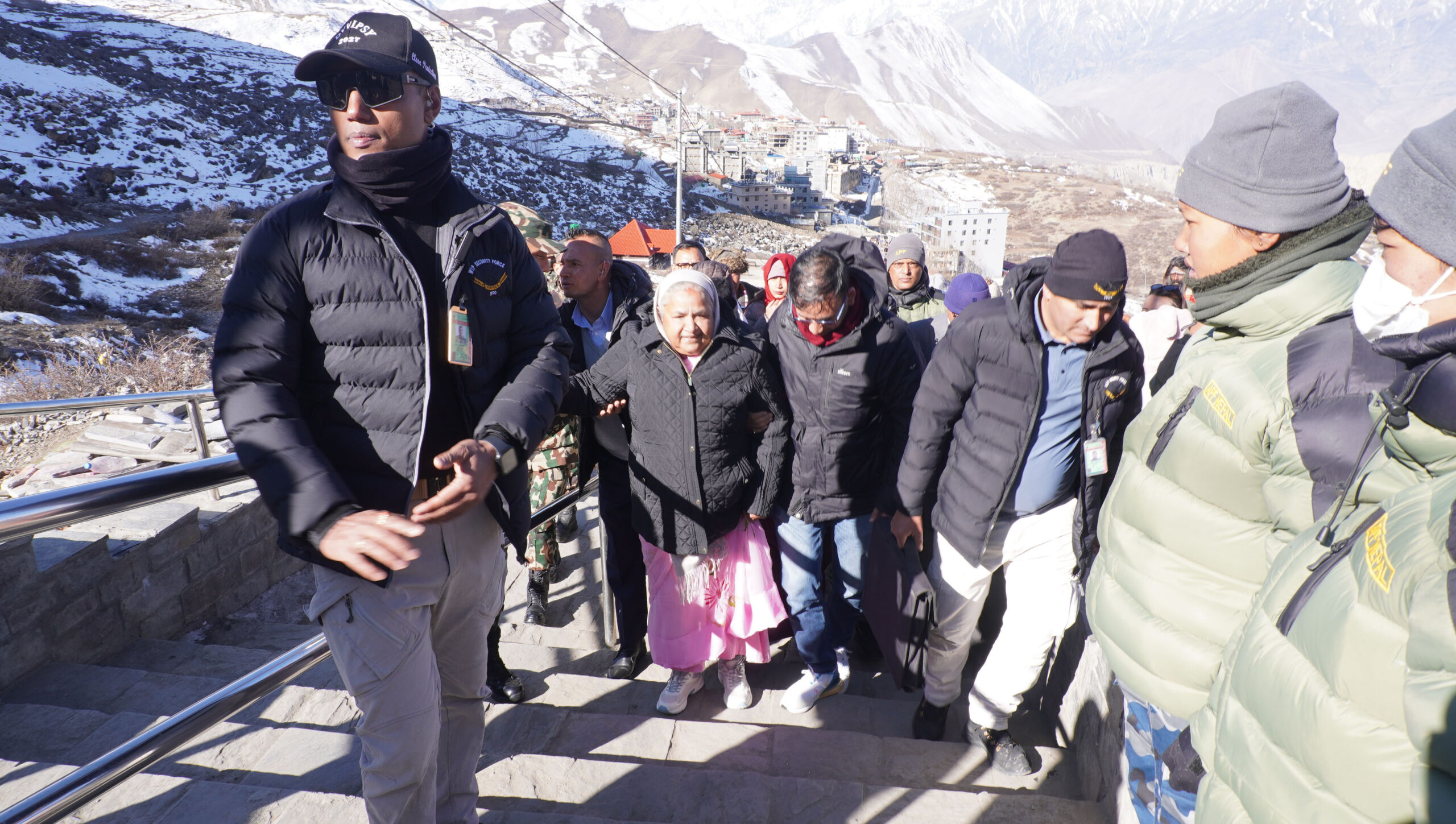 मुस्ताङ– प्रधानमन्त्री सुशीला कार्कीले यहाँको वारागुङ मुक्तिक्षेत्र–१ स्थित पवित्र मुक्तिनाथ मन्दिरको दर्शन गरेकी छन् ।