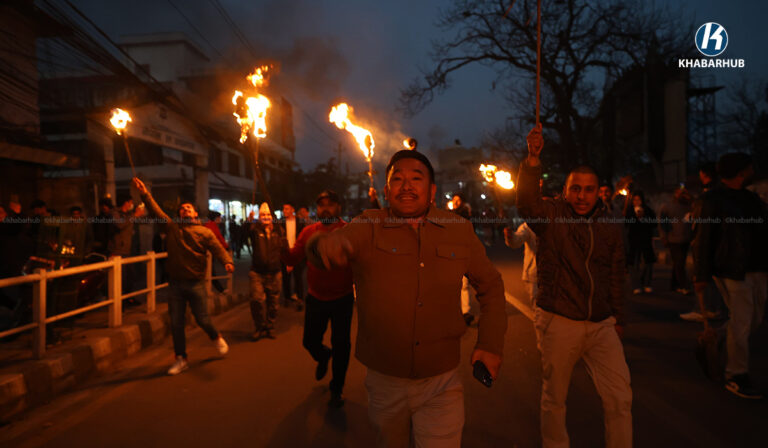 रास्वपा कार्यकर्ताले झण्डा जलाएपछि एमालेले निकाल्यो राँके जुलुस, जलाइयो बालेनको पुत्ला (तस्बिरहरु)