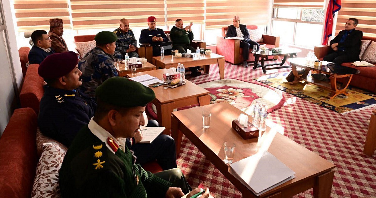 गृहमन्त्री एवं केन्द्रीय सुरक्षा समितिका अध्यक्ष ओमप्रकाश अर्यालको अध्यक्षतामा जारी बैठकमा चारवटै सुरक्षा निकायका उच्च पदाधिकारीहरूको उपस्थिति रहेको छ।