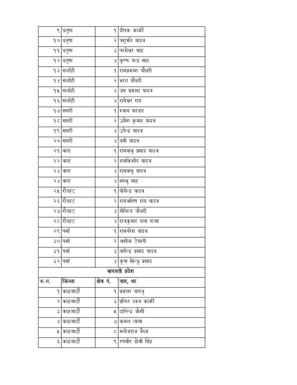 काठमाडौं- जनता समाजवादी पार्टी नेपालले फागुन २१ गते हुन लागेको प्रतिनिधिसभाको निर्वाचनका लागि प्रत्यक्षतर्फका सबै उम्मेदवारको सूची सार्वजनिक गरेको छ।
