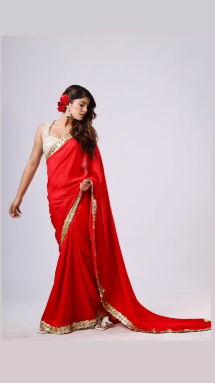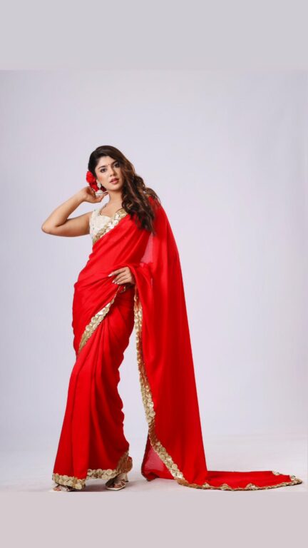 उनले सामाजिक सञ्जालमा तीन तस्बिरहरु सार्वजिक गरेकी छन् । उनले क्याप्सनमा लेखेकी छन्, ‘रातो सारीमा सजिएकी छ ।’