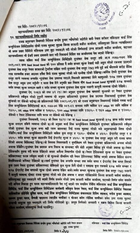 काठमाडौँ – महान्यायाधिवक्ताको कार्यालयले फिक्स्ड ब्रोडब्यान्ड इन्टरनेट सेवामा उपभोक्तामाथि थप