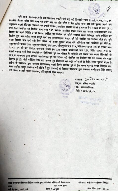 राजश्व अनुसन्धान विभागका निर्देशक सन्तोष कुमार न्यौपानेको जाहेरीले वादी नेपाल सरकार शंकित वर्ल्ड लिंक कम्युनिकेसन लिमिटेडसमेत रहेको राजश्व चुहावट मुद्दामा सरकारी वकिल कार्यालय ललितपुरका जिल्ला महान्याधिवक्ता जनक प्रसाद घिमिरेले शंकितहरु उपर मुद्दा नचलाउने गरी गरेको निर्णयलाई उच्च सरकारी वकिल कार्यालय पाटनका सहन्यायाधिवक्ता ईश्वरी प्रसाद ढकालले सदर गरी निकासार्थ मिसल महान्यायाधिवक्ताको कार्यालय पठाएका थिए ।