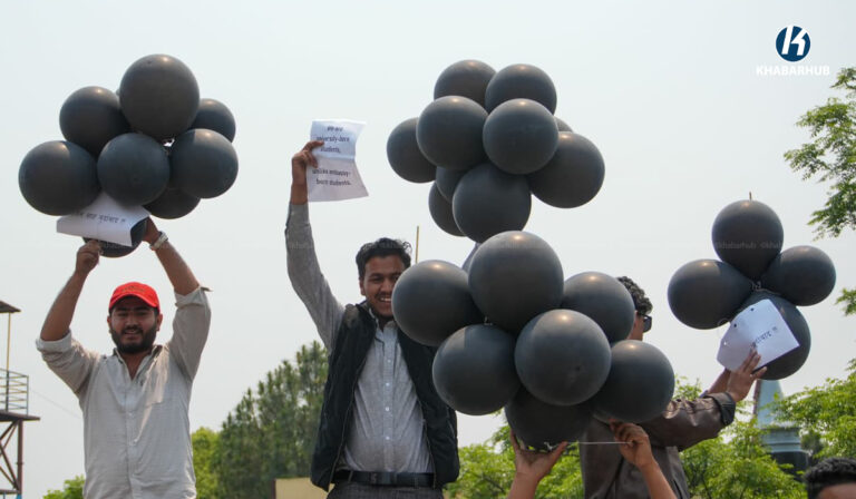 कालो बेलुन उडाउँदै विद्यार्थीले मागे गृहमन्त्रीको राजीनामा (तस्बिरहरू) « Khabarhub