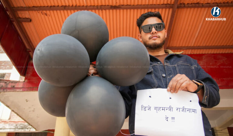 कालो बेलुन उडाउँदै विद्यार्थीले मागे गृहमन्त्रीको राजीनामा (तस्बिरहरू)