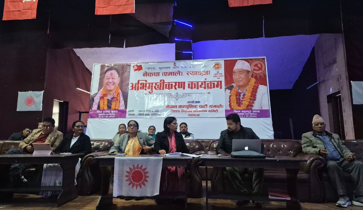 बिहीबार सम्पन्न पार्टीको बैठक तथा अभिमूखिकरण कार्यक्रम जिल्ला पार्टी अध्यक्ष सूर्यप्रसाद गैरेको अध्यक्षता, पार्टी केन्द्रीय सचिव पद्माकुमारी अर्यालको प्रमुख आतिथ्यता र पार्टी जिल्ला सचिव रामचन्द्र भट्टराईको सञ्चालनमा भएको थियो । कार्यक्रममा स्वागत मन्तव्य नेता महेश पुरीले राखेका थिए ।