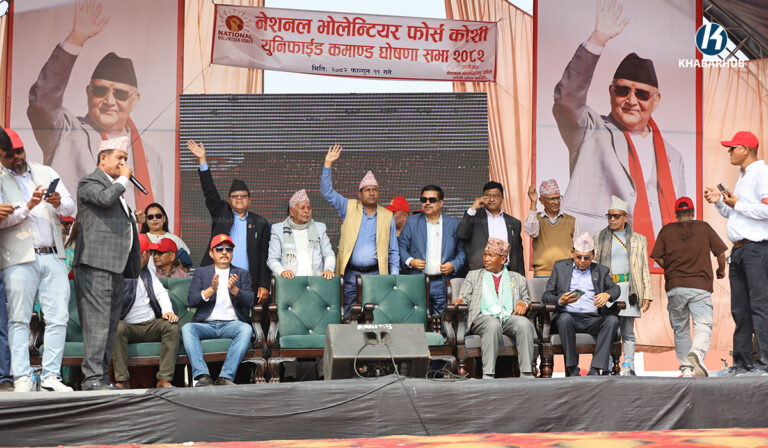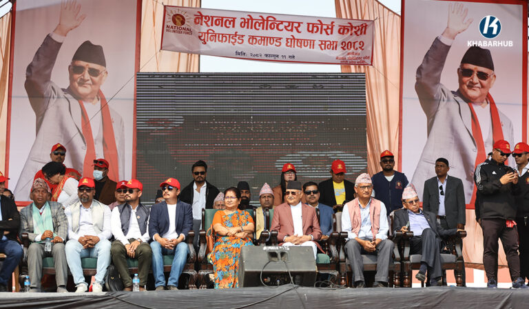 दमक– नेकपा एमालेका अध्यक्ष केपी शर्मा ओलीको उपस्थितिमा नेशनल भोलेन्टियर फोर्स कोशी युनिफाइड कमाण्डको औपचारिक घोषणा सभा आयोजना गरिएको छ ।