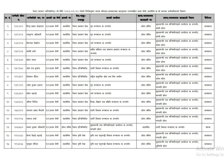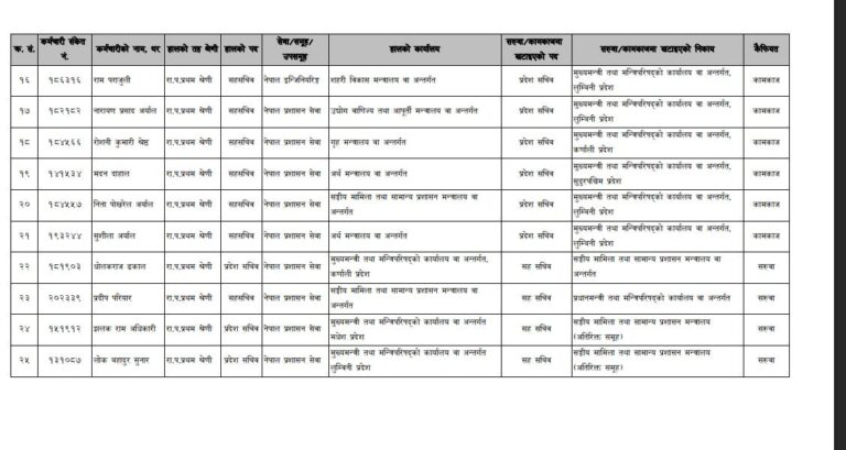बिहीबार बसेको मन्त्रिपरिषद् बैठकले २० जनालाई प्रदेश सरकारहरूमा ५ जनालाई संघीय सरकारका मन्त्रालयहरुमा सरुवा गरेको हो ।