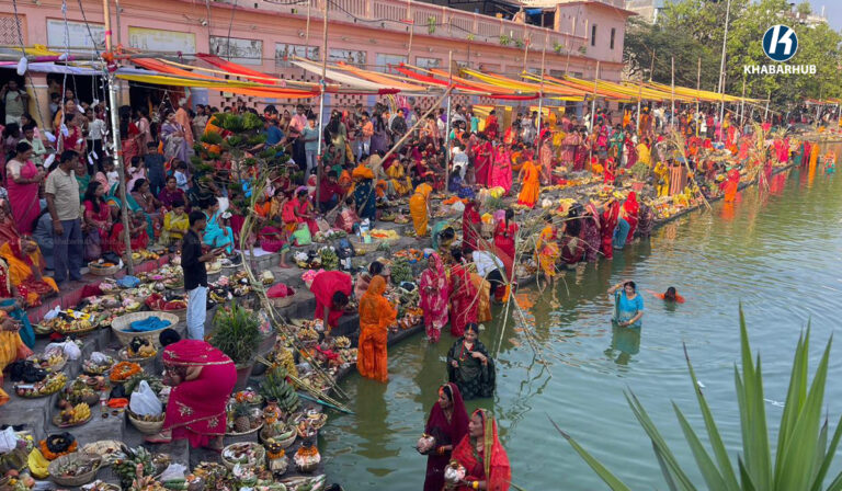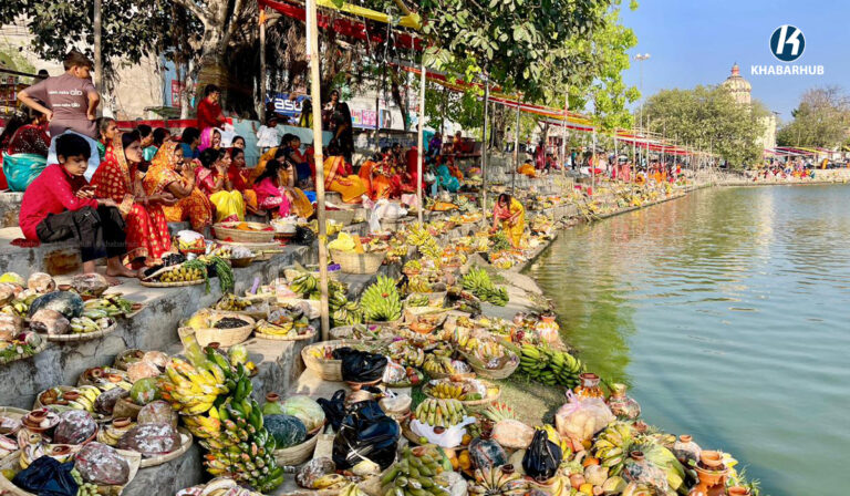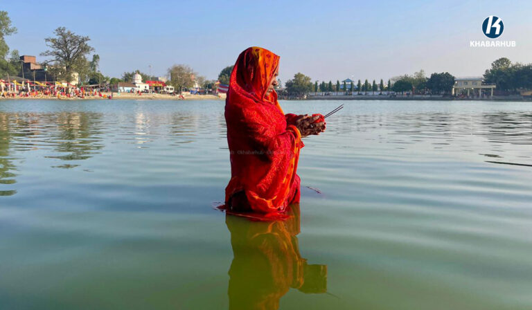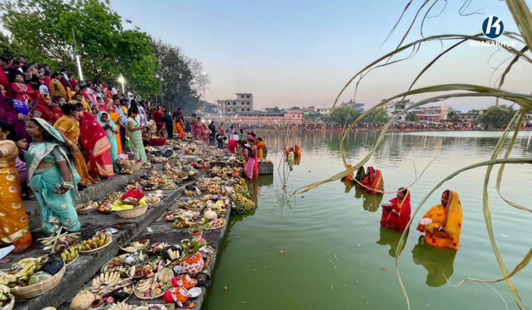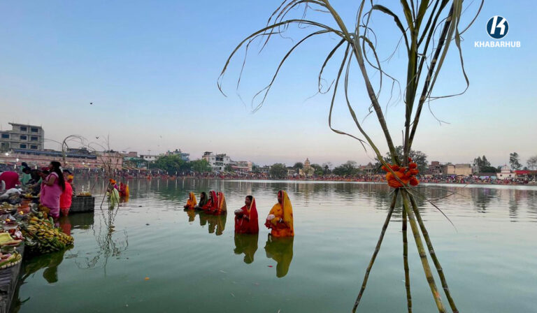 काठमाडौं– जनकपुरमा चैते छठको तेस्रो दिन आज मंगलबार अस्ताउँदो सूर्यलाई अर्घ्य दिइएको छ ।