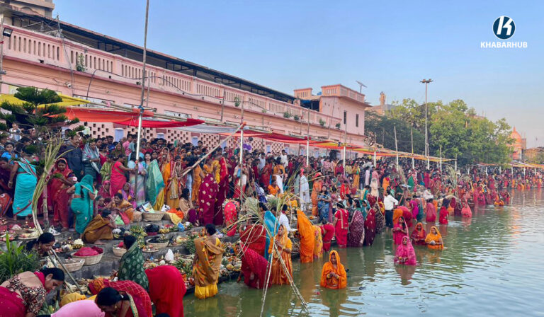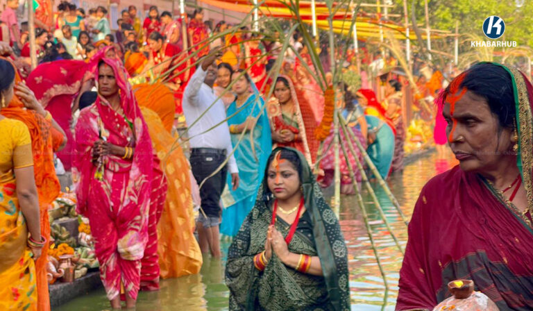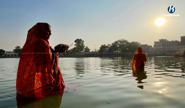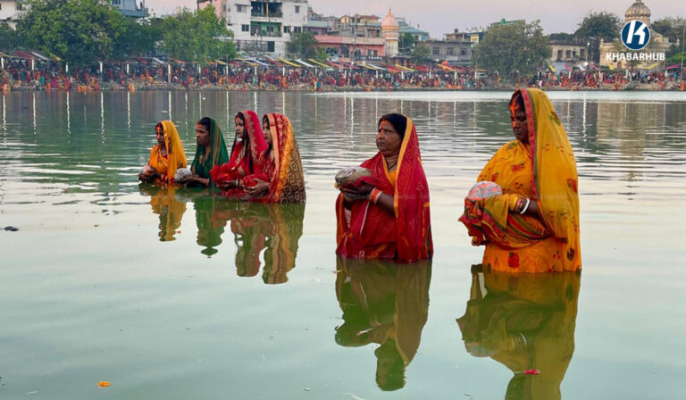 चैते छठको तेस्रो दिन अस्ताउँदो सूर्यलाई अर्घ्य दिइयो (तस्बिरहरू) « Khabarhub